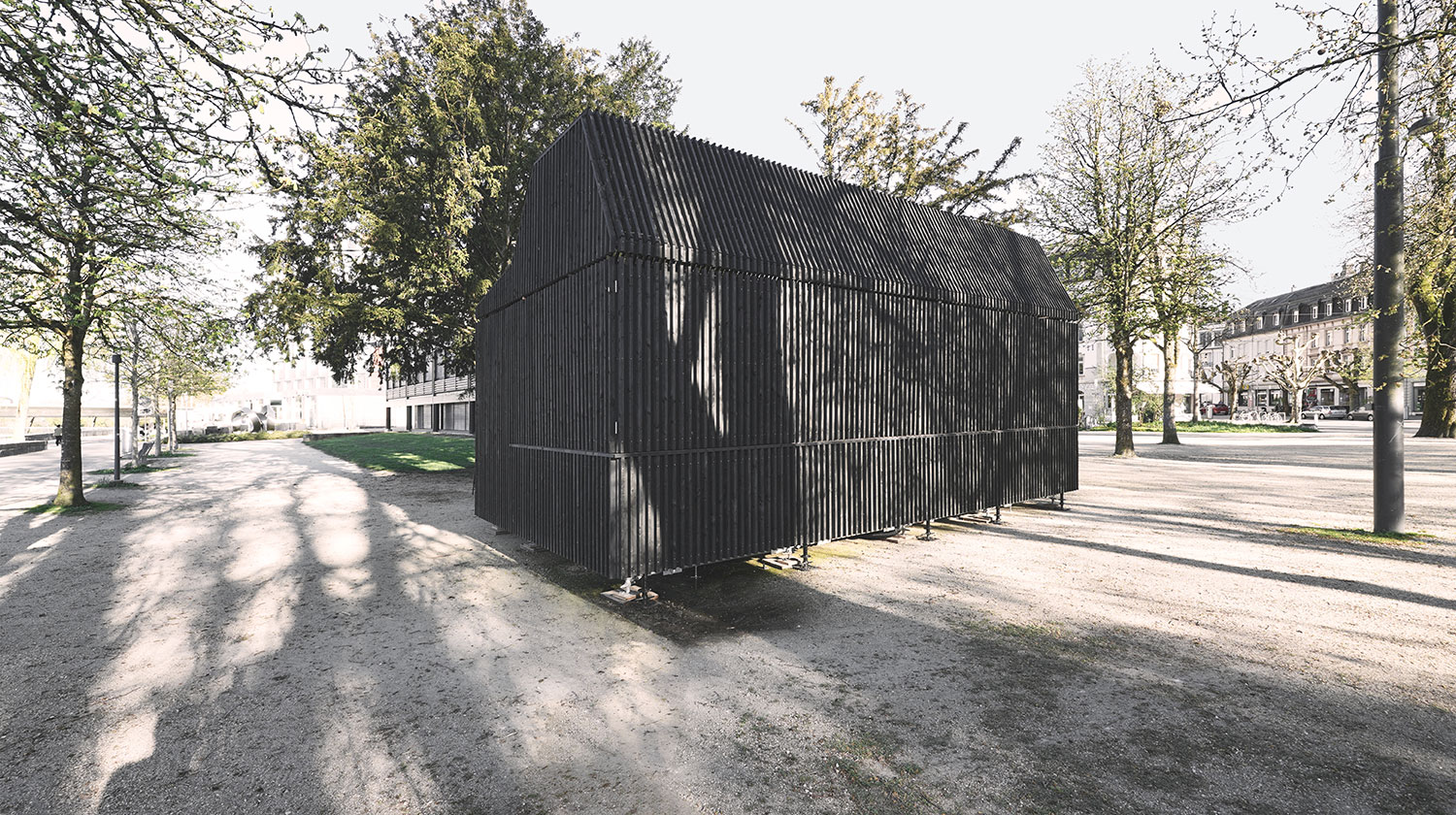 As a small-scale, modular structure, the building is based on a prefabricated system of scaffold components clad with timber slats. This allows for efficient assembly, flexible adjustment of its length, and resource-conscious operation during the summer months. The functional organization comprises a gastronomic core, storage and ancillary spaces, and a covering roof structure, which—through integrated lighting—contributes to the atmospheric quality of the square in the evening hours.